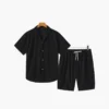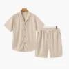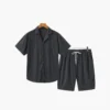 Confeccionado en suave pana, este conjunto combina la ropa informal con un toque de encanto tradicional. La camisa de corte amplio combina a la perfección con los pantalones cortos con cordón, de corte entallado pero informal, lo que lo convierte en un imprescindible para una elegancia sin esfuerzo. Ya sea para relajarse en casa o para salir en una fresca noche de verano, este conjunto ofrece estilo y comodidad.